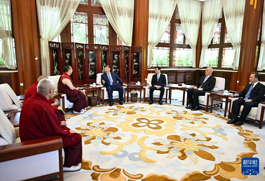 6月6日,中共中央總書記、國家主席、中央軍委主席習(xí)近平在北京中南海接受班禪額爾德尼·確吉杰布拜見。新華社記者 燕雁 攝