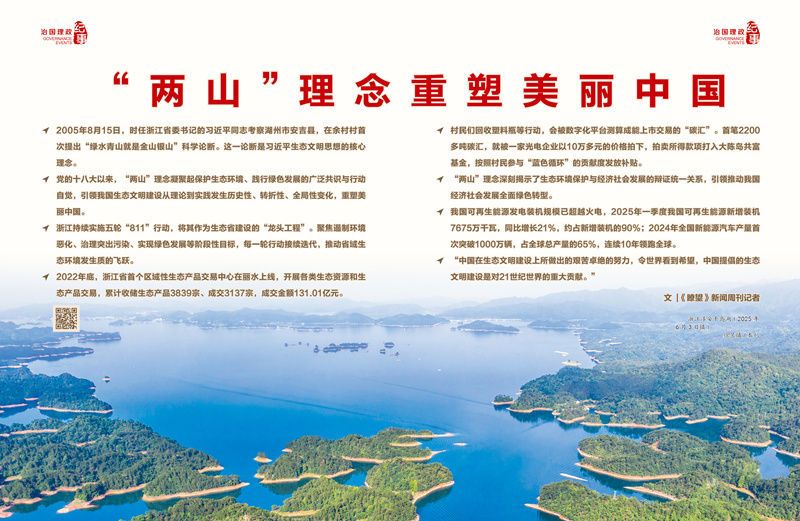 作為習(xí)近平生態(tài)文明思想的核心理念,“兩山”理念給出了中國方案。它不僅深刻重塑了中國經(jīng)濟(jì)社會(huì)全面發(fā)展的路徑,更超越了地域和時(shí)代局限,為全球可持續(xù)發(fā)展貢獻(xiàn)東方智慧。