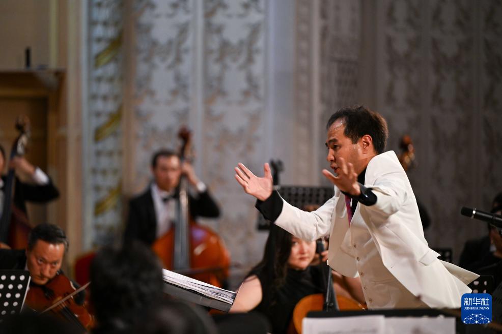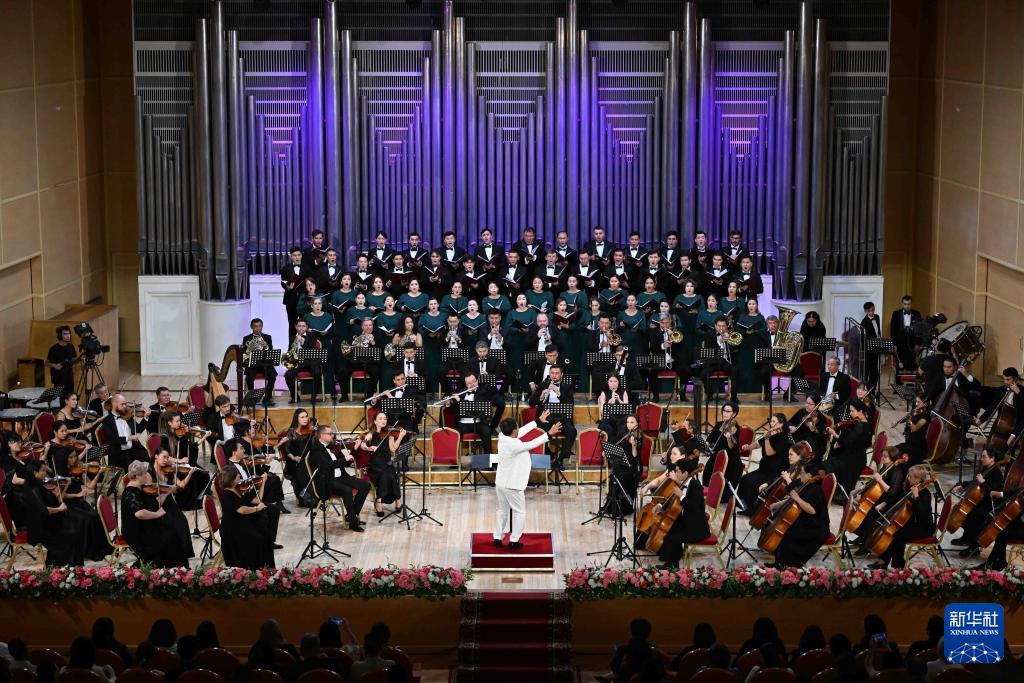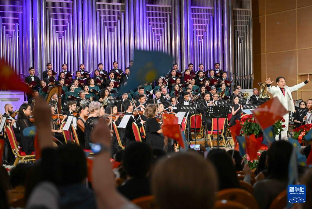 紀(jì)念中國(guó)人民抗日戰(zhàn)爭(zhēng)暨世界反法西斯戰(zhàn)爭(zhēng)勝利80周年、紀(jì)念冼星海誕辰120周年音樂會(huì)3日晚在哈薩克斯坦阿拉木圖的國(guó)立江布爾音樂廳舉行。阿市政府、外交領(lǐng)事機(jī)構(gòu)、老兵協(xié)會(huì)、當(dāng)?shù)厝A僑華人、中資機(jī)構(gòu)、留學(xué)生等各界人士近600人出席。哈國(guó)立拜卡達(dá)莫夫合唱團(tuán)、阿布德拉舍夫國(guó)立模范交響樂隊(duì)共同演繹《黃河大合唱》《阿曼蓋爾德》等作品。觀眾們自發(fā)揮舞中哈兩國(guó)國(guó)旗,齊聲高唱歌曲,現(xiàn)場(chǎng)氣氛澎湃激昂。