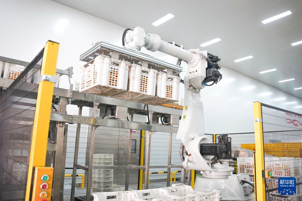 海南達(dá)川食品有限公司的全自動(dòng)機(jī)械臂在投料作業(yè)(7月28日攝)。