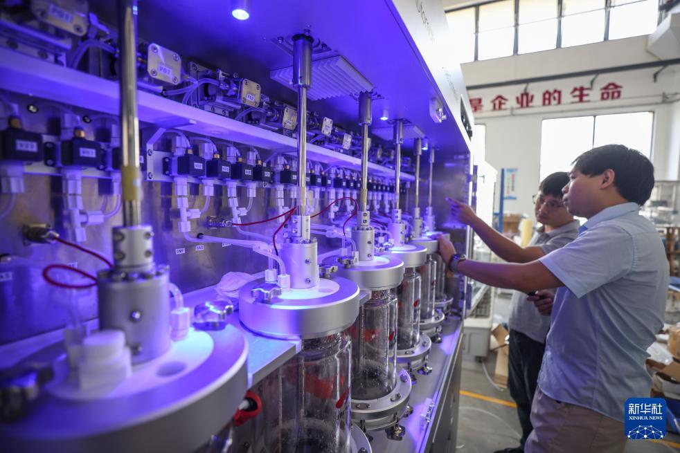 9月4日,海南建邦制藥科技有限公司的工作人員在測(cè)試多肽制藥設(shè)備。