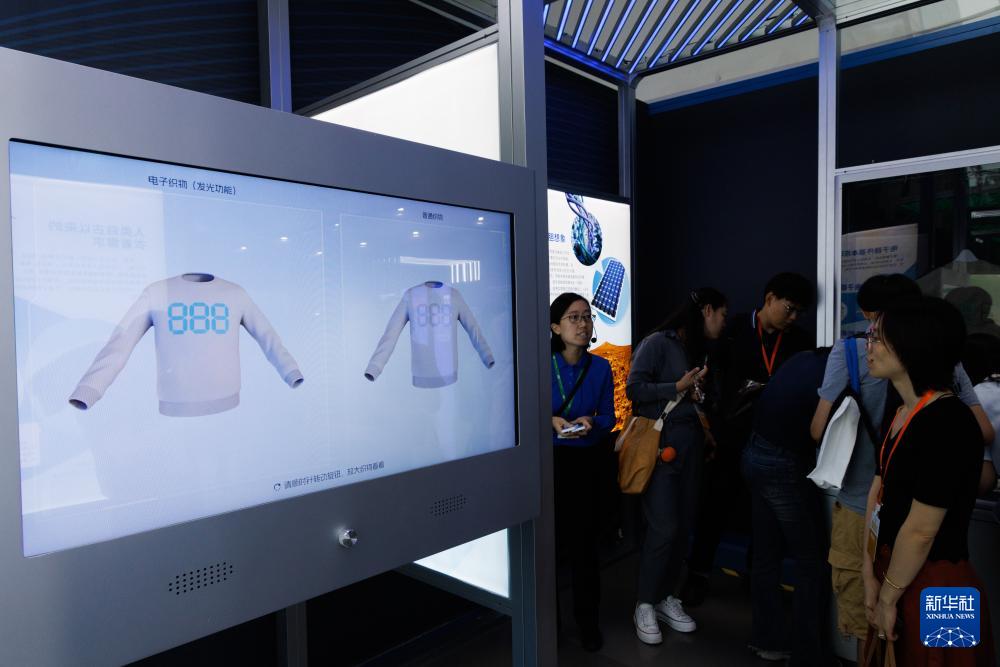 9月5日,參觀者在中國科技館了解可穿戴電子織物展品。