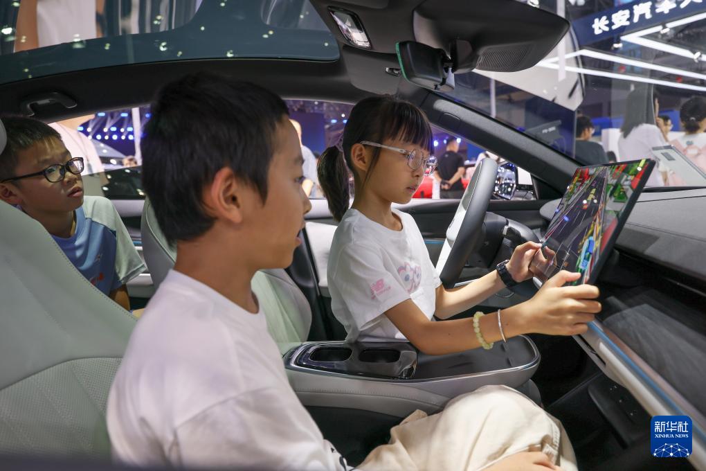 9月5日,觀眾在智博會(huì)現(xiàn)場(chǎng)參觀、體驗(yàn)新能源汽車。
