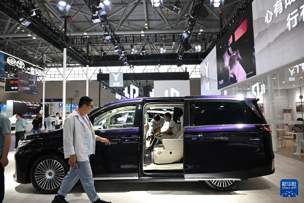9月5日,觀眾在智博會(huì)現(xiàn)場(chǎng)參觀新能源汽車。