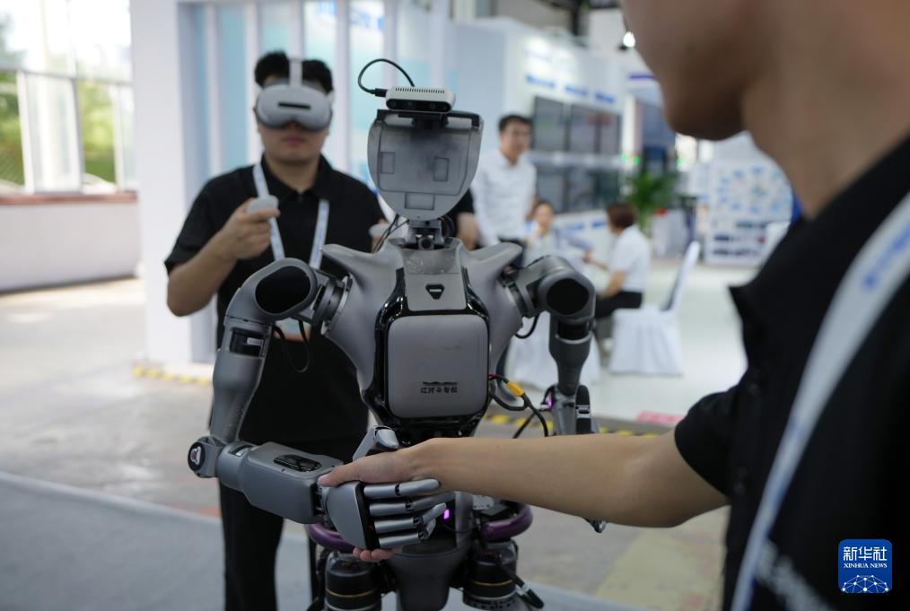 9月6日,在2025全球工業(yè)互聯(lián)網(wǎng)大會展覽區(qū),工作人員演示具身智能操作系統(tǒng)。