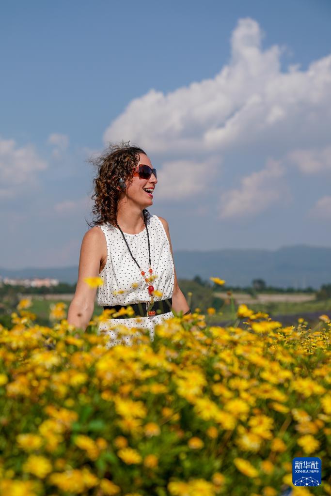 9月8日,游客在東風韻小鎮(zhèn)花海中游玩。
