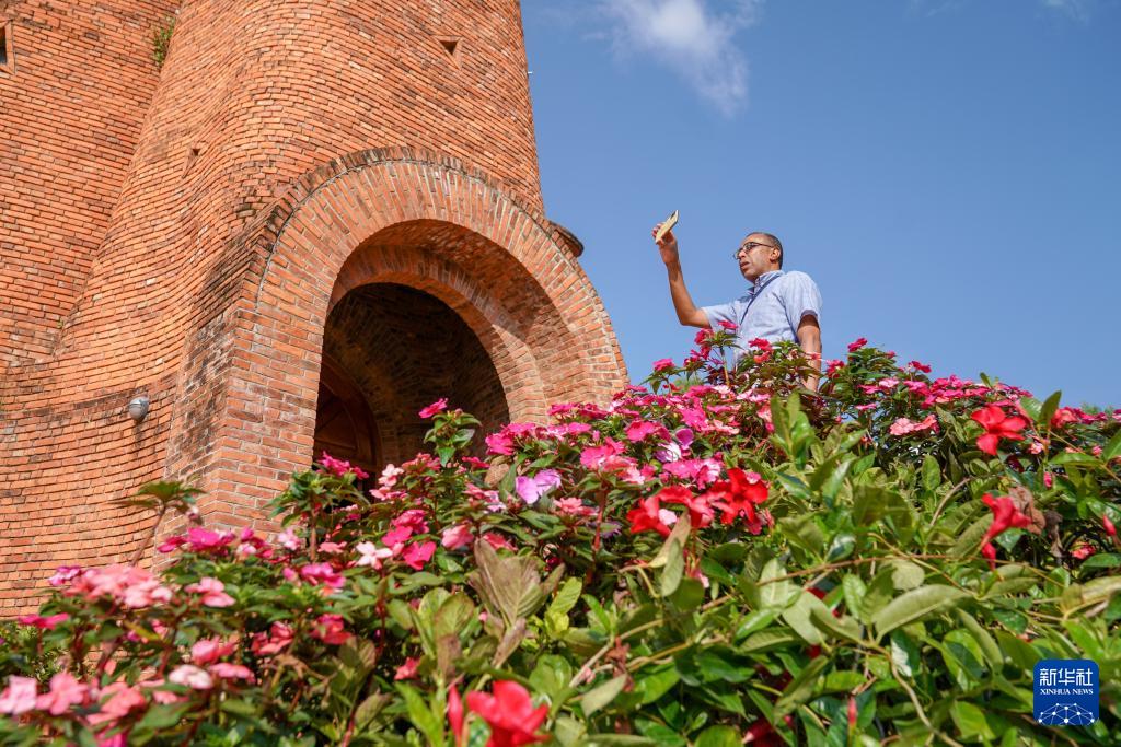 9月8日,一名游客在東風韻小鎮(zhèn)參觀游覽。
