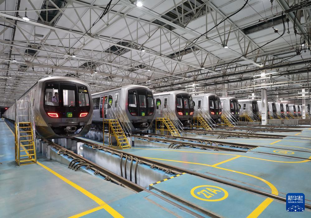 9月9日,地鐵列車在石家莊市地鐵西兆通車輛段整裝待發(fā)。