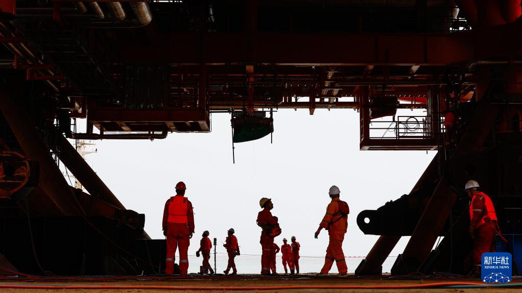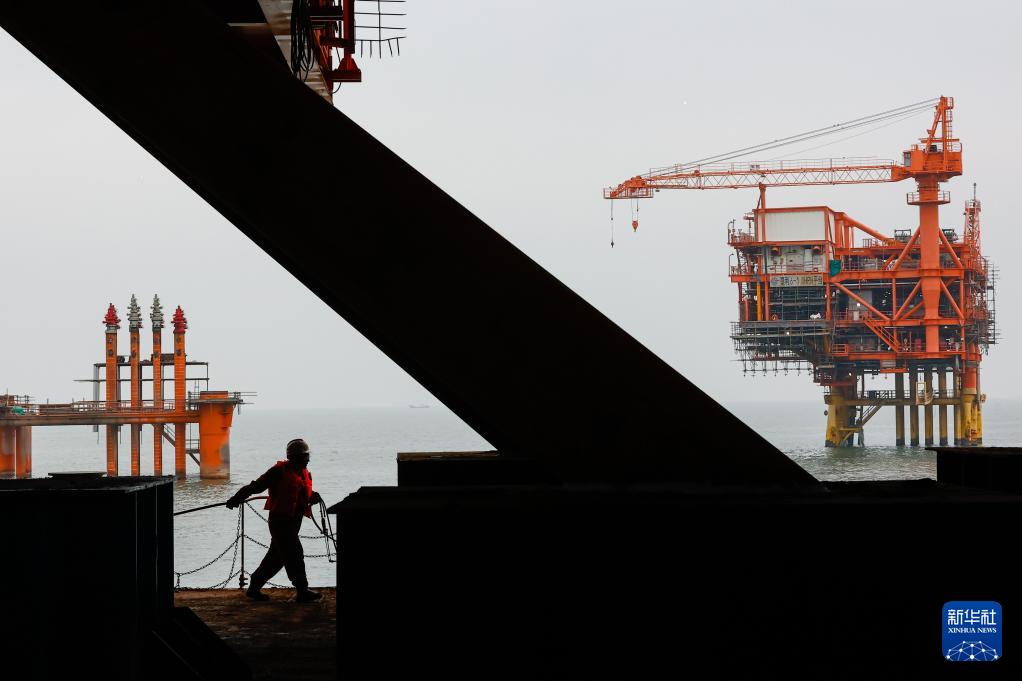 9月7日,工人穿梭在墾利6-1油田10-1北區(qū)塊Ⅱ期開發(fā)項(xiàng)目油氣平臺(tái)安裝作業(yè)現(xiàn)場。
