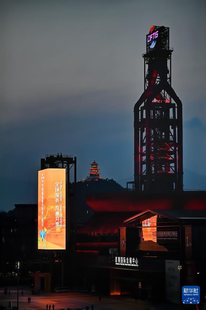 2025年中國國際服務(wù)貿(mào)易交易會于9月10日至14日在北京首鋼園區(qū)舉辦。夜幕下,首鋼園區(qū)內(nèi)工業(yè)遺存在現(xiàn)代燈光輝映下,展現(xiàn)出別樣之美。