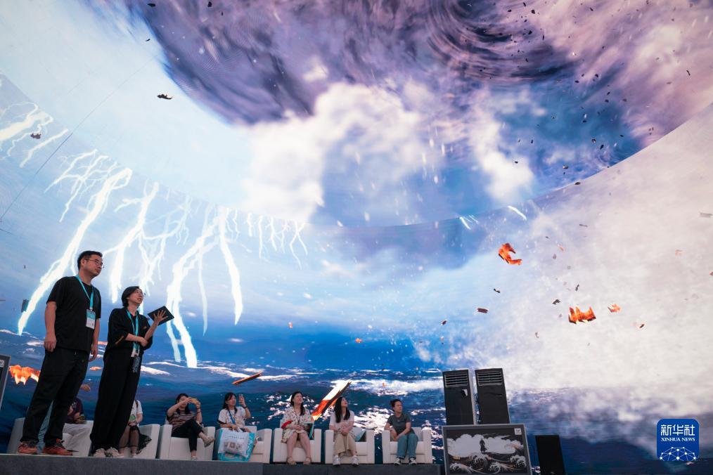 9月12日,觀眾在2025中國文化旅游產(chǎn)業(yè)博覽會上參觀多業(yè)態(tài)文旅球幕。