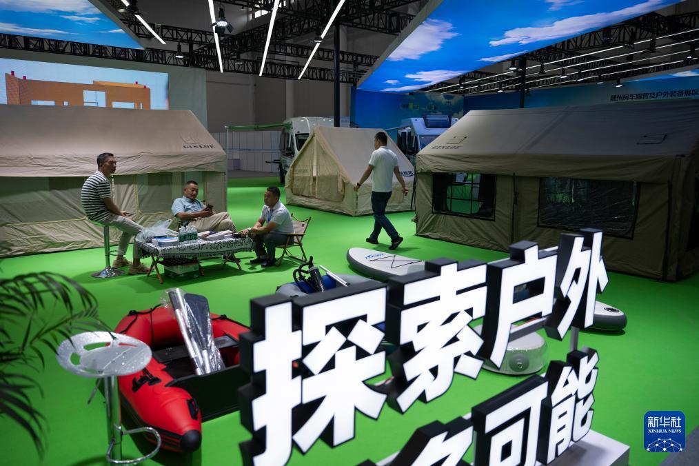 9月12日,觀眾在2025中國文化旅游產(chǎn)業(yè)博覽會戶外裝備展區(qū)參觀。
