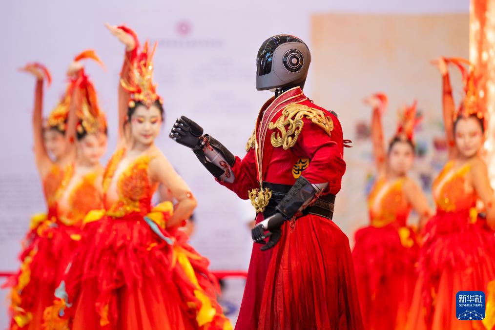 9月12日在2025中國文化旅游產(chǎn)業(yè)博覽會上拍攝的人形機(jī)器人舞蹈表演。