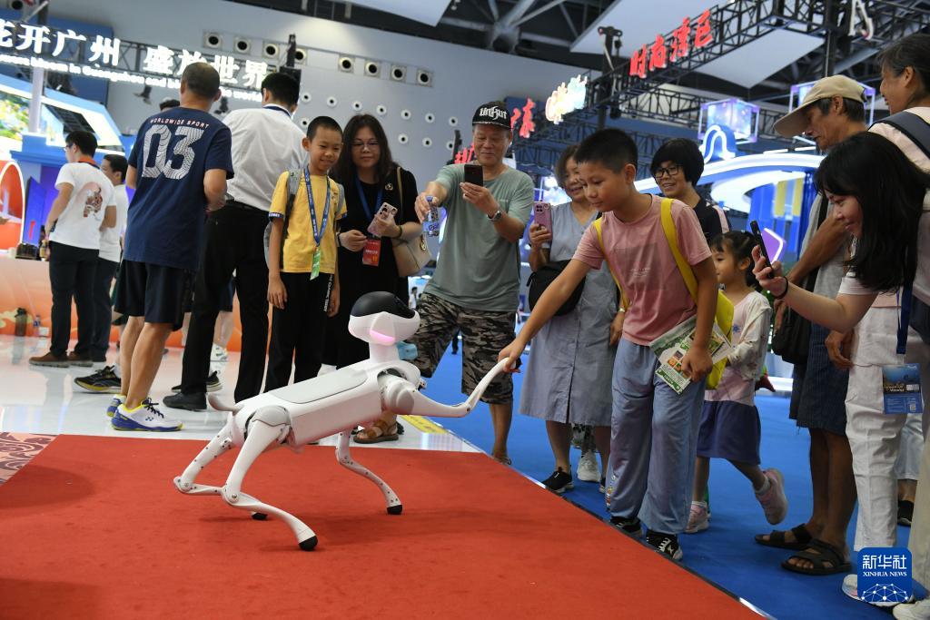 9月13日,在2025廣東國際旅游產(chǎn)業(yè)博覽會現(xiàn)場,觀眾與萌寵機器狗互動。