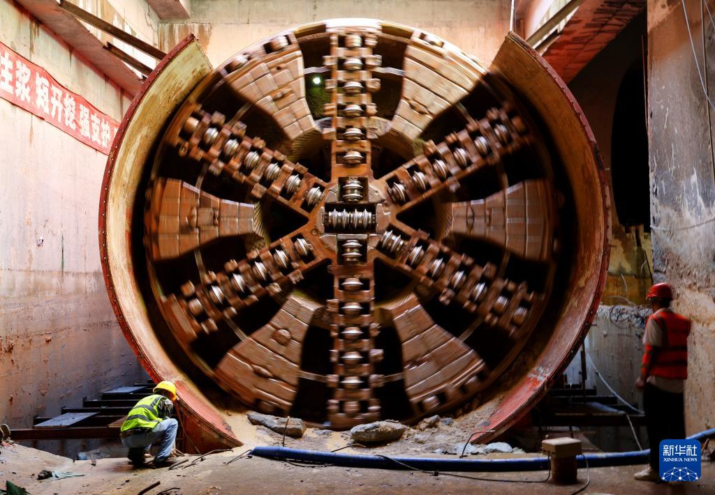 穗莞深城際前皇全開段首臺接收的盾構(gòu)機(jī)“廣興11號”接收井現(xiàn)場(9月16日攝)。
