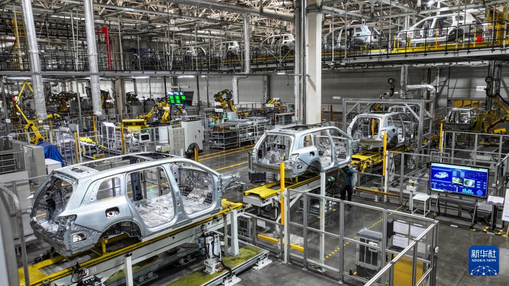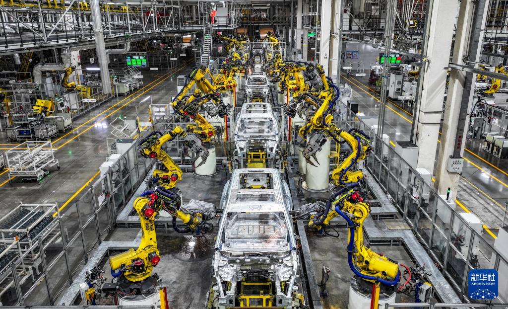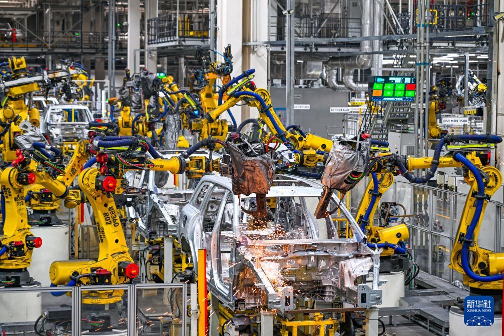 9月19日在位于重慶市兩江新區(qū)的賽力斯汽車超級工廠拍攝的自動化生產(chǎn)作業(yè)現(xiàn)場。