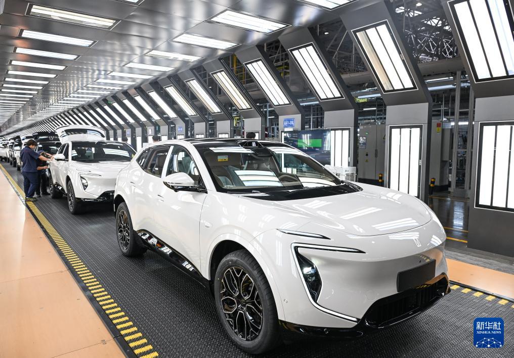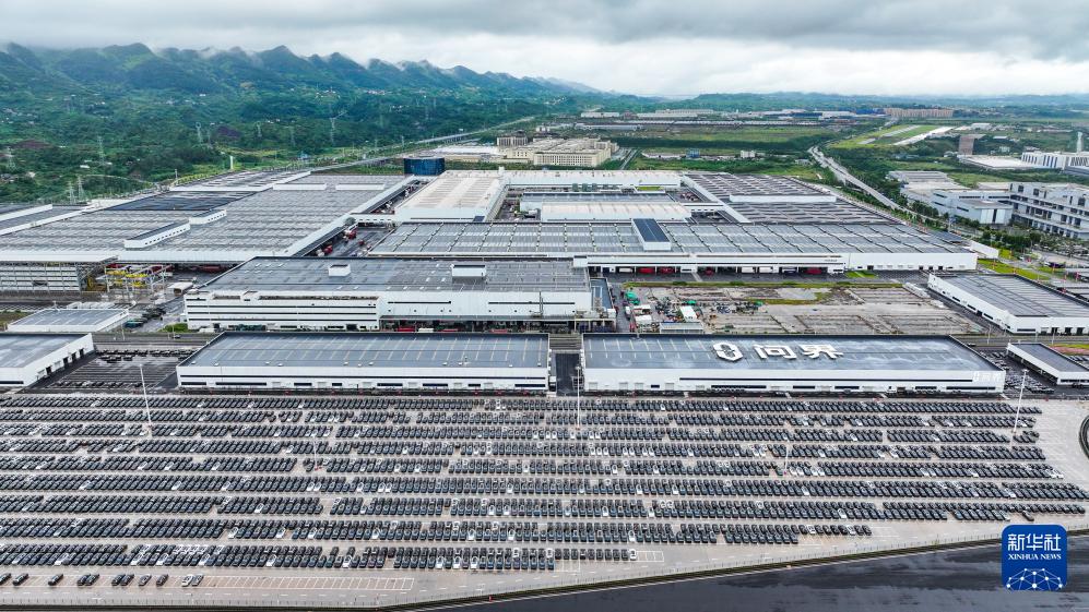 9月19日在位于重慶市兩江新區(qū)的賽力斯汽車超級工廠拍攝的即將下線的新能源汽車(無人機(jī)照片)。