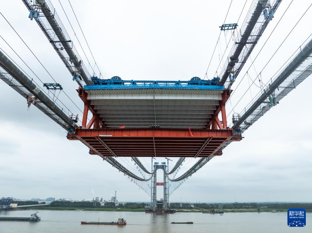 9月20日,由湖北交投投資建設、中鐵大橋局承建的燕磯長江大橋主跨首節(jié)鋼梁吊裝完成,工程建設進入鋼梁架設階段。大橋采用雙塔單跨設計并一跨過江,主跨1860米,上層設計為高速公路,下層為城市快速路。作為鄂州國際物流核心樞紐的綜合配套工程,燕磯長江大橋是鄂東空鐵、空陸聯(lián)運立體交通運輸體系的重要過江通道,也是推動黃岡、鄂州、黃石三市跨江聯(lián)動開發(fā),促進三市一體化發(fā)展的關(guān)鍵工程。