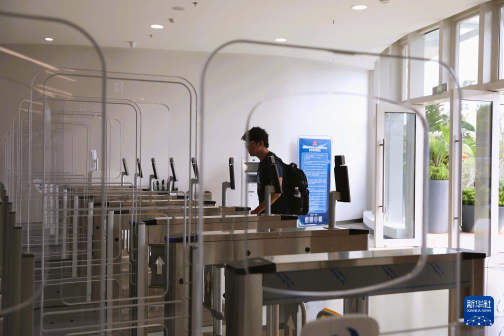 9月25日,一名學生走進海南陵水黎安國際教育創(chuàng)新試驗區(qū)的圖書館。該館門禁采用無感借閱系統(tǒng),可通過人臉識別關聯(lián)學生名下借閱的書目情況。
