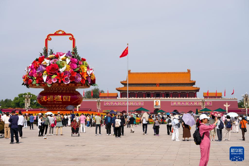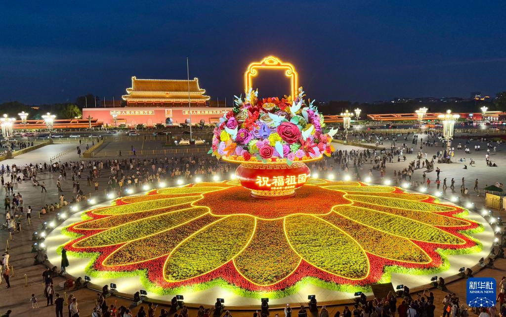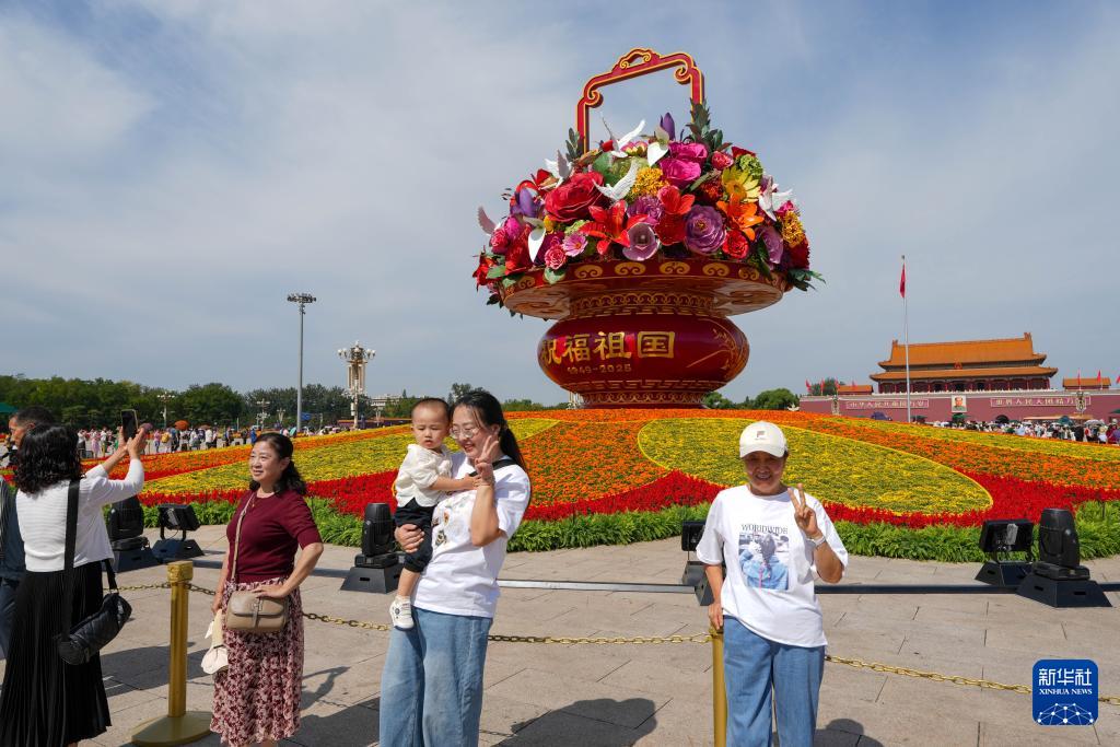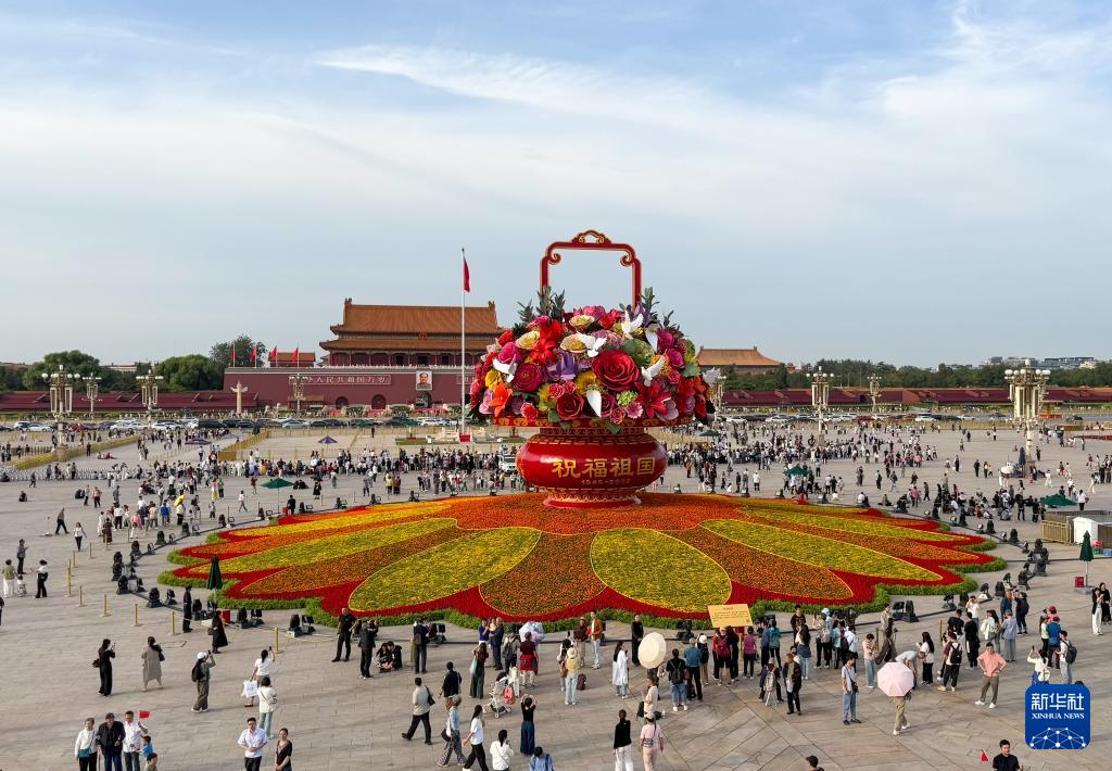 9月25日在天安門廣場拍攝的“祝福祖國”大花籃。
