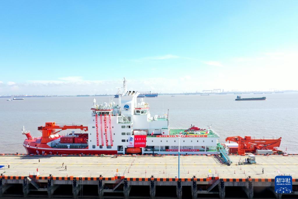 9月26日拍攝的??吭谏虾鴥?nèi)基地碼頭的“雪龍2”號(hào)(無人機(jī)照片)。