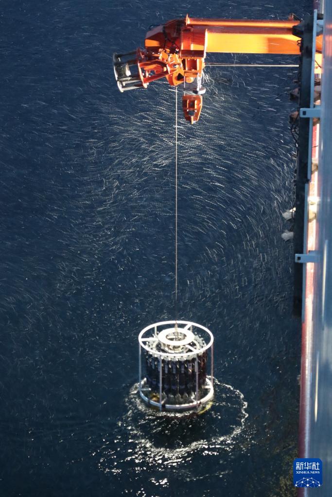 9月8日,“雪龍2”號(hào)回收CTD(溫鹽深剖面儀)。