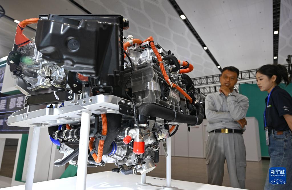 9月27日拍攝的2025世界新能源汽車大會(huì)上展出的一款混合動(dòng)力系統(tǒng)。