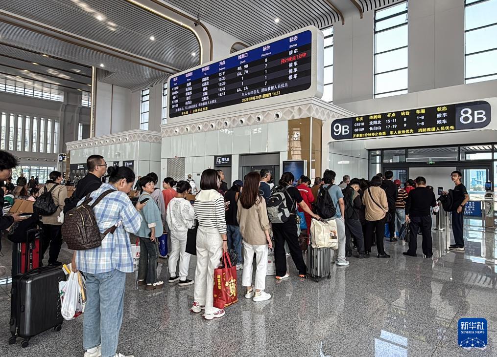 旅客在長白山站準(zhǔn)備乘車(10月3日攝)。