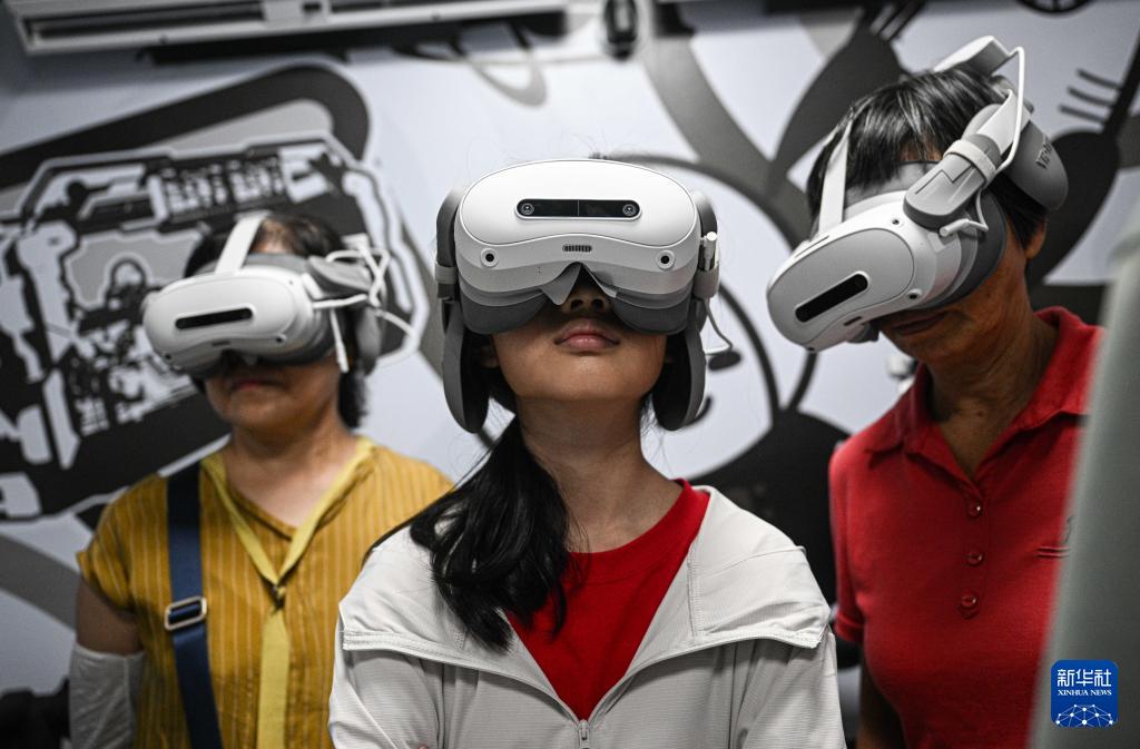 10月7日,游客在文昌航天科普中心進行MR星際穿越體驗。