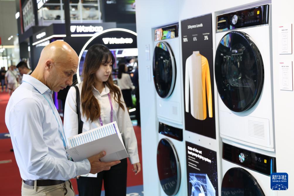 10月15日,客商在廣交會(huì)上咨詢了解智能洗衣機(jī)。