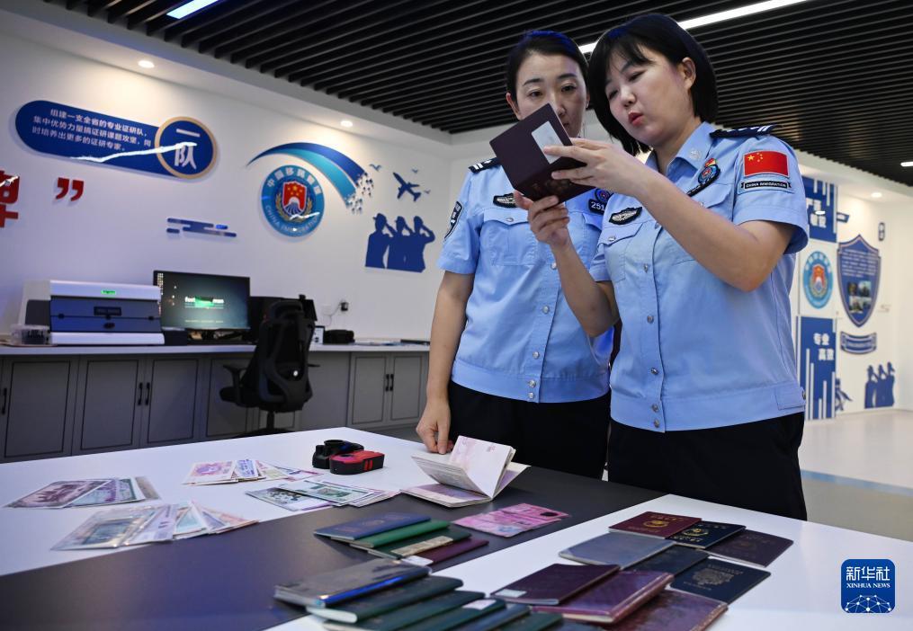 這是10月14日拍攝的青島機(jī)場邊檢站證研室。這里收集存放了大量護(hù)照樣本供隨時(shí)查閱對比。