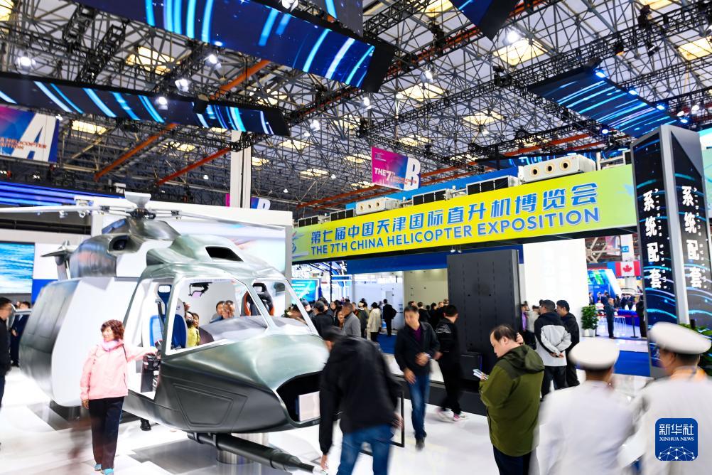 10月16日,觀眾在天津直博會直升機館內(nèi)參觀洽談。