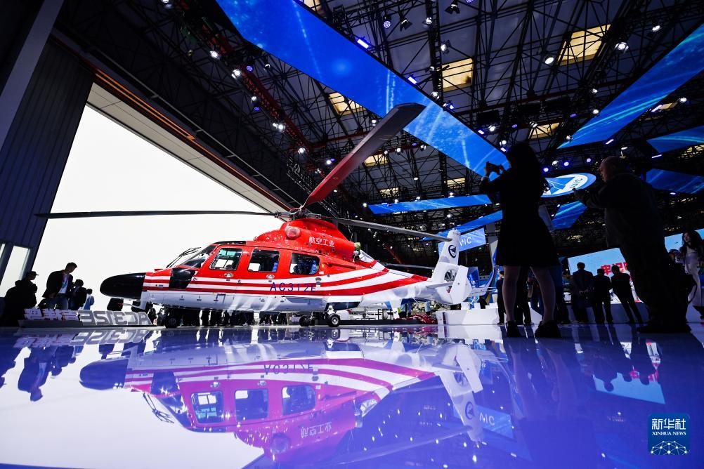 10月16日,觀眾在天津直博會直升機館內(nèi)參觀AC312E直升機。