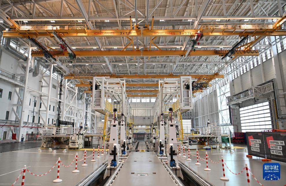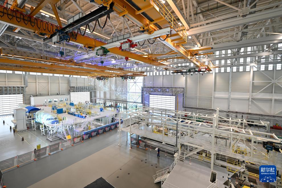 10月22日在空客二線項目總裝廠房拍攝的一架待總裝飛機(jī)。