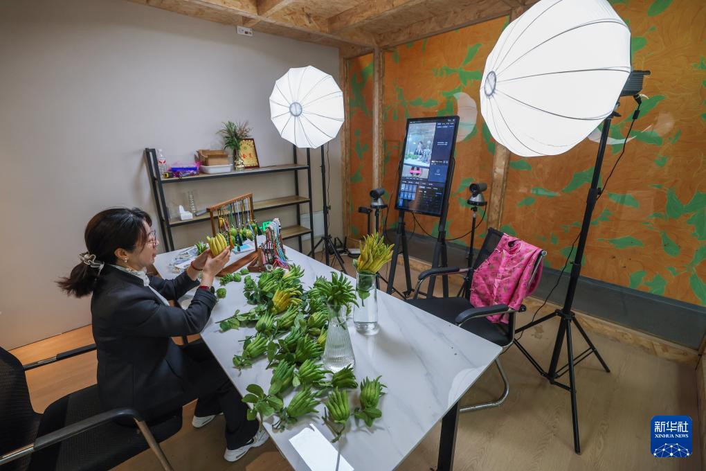 10月22日,在金華市金東區(qū)赤松鎮(zhèn)北山口村的金華佛手農(nóng)林服務(wù)中心內(nèi)的直播間,工作人員進(jìn)行佛手鮮果及衍生產(chǎn)品的直播銷(xiāo)售。