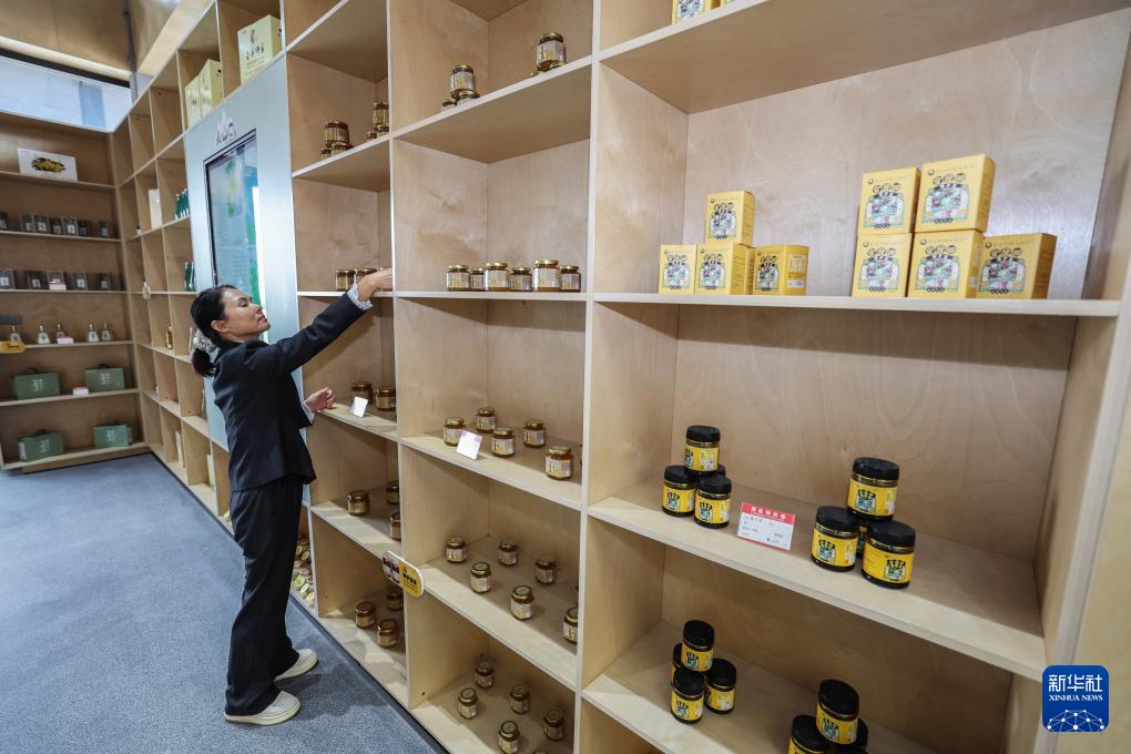 10月22日拍攝的位于金華市金東區(qū)赤松鎮(zhèn)北山口村的金華佛手農(nóng)林服務(wù)中心內(nèi)的商品展陳中心,展示和銷(xiāo)售包括佛手膏、佛手茶、佛手酒、佛手蜜餞等在內(nèi)的各類(lèi)佛手衍生產(chǎn)品。