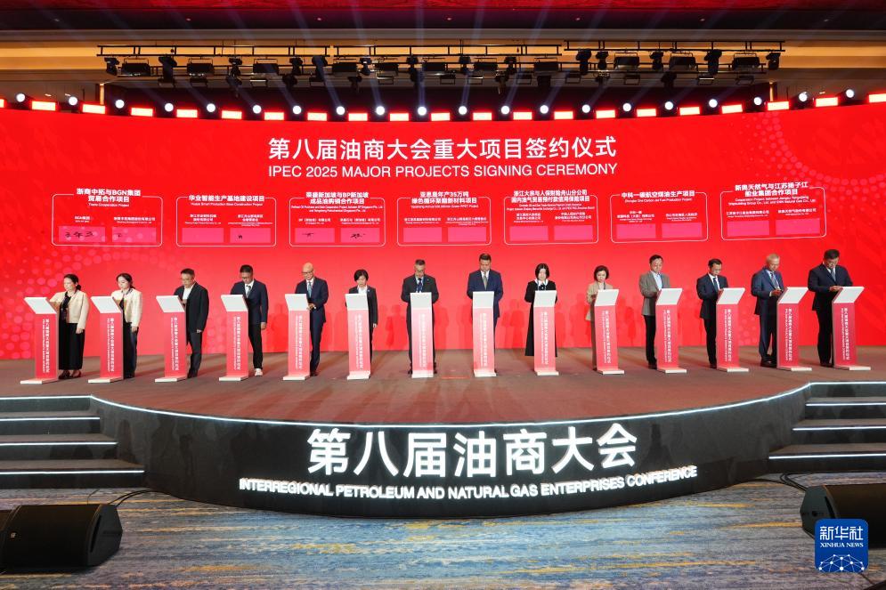 10月22日在舟山國際會(huì)議中心拍攝的第八屆油商大會(huì)重大項(xiàng)目簽約儀式。
