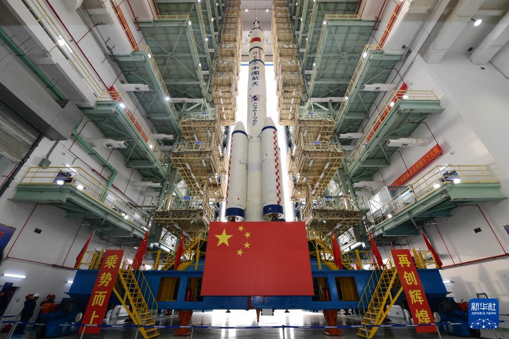 10月24日,神舟二十一號載人飛船與長征二號F遙二十一運載火箭組合體準(zhǔn)備轉(zhuǎn)運。