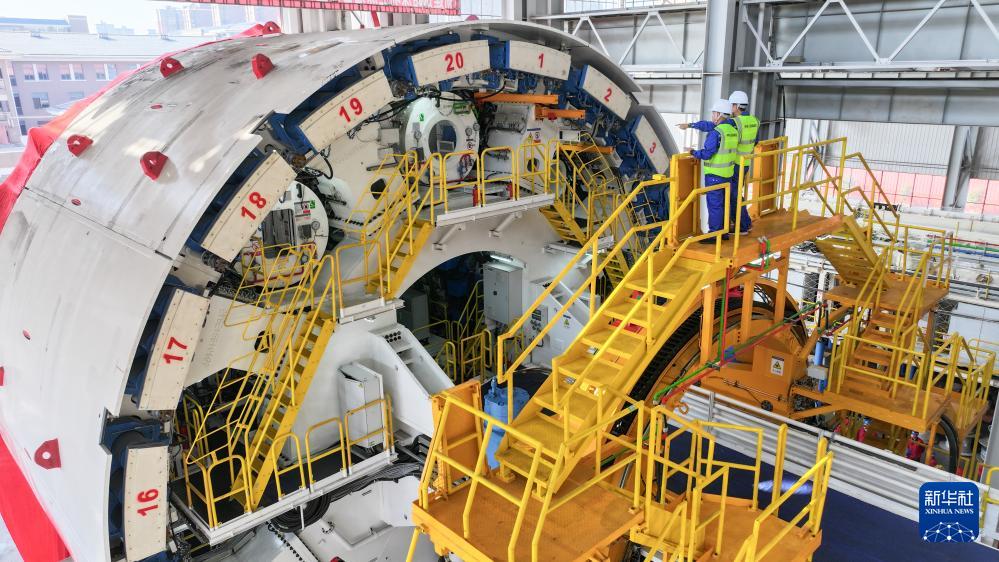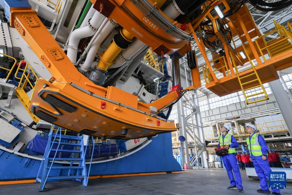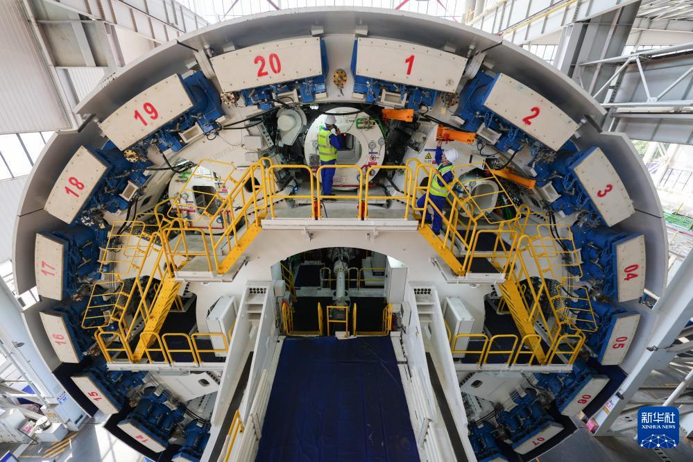 10月24日,在鐵建重工長沙第一產(chǎn)業(yè)園,工人在調(diào)試“龍崗二號”盾構(gòu)機(jī)。