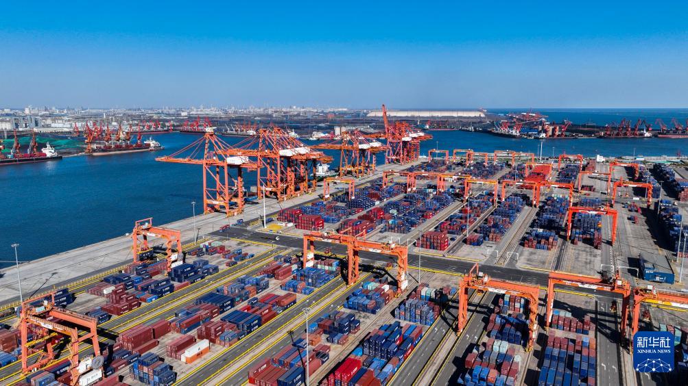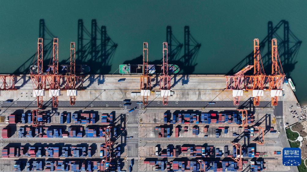 10月27日拍攝的河北省唐山港京唐港區(qū)集裝箱碼頭(無人機(jī)照片)。