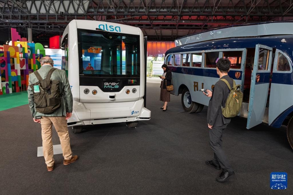 這是11月4日在西班牙巴塞羅那2025全球智慧城市大會(huì)上拍攝的電動(dòng)汽車。