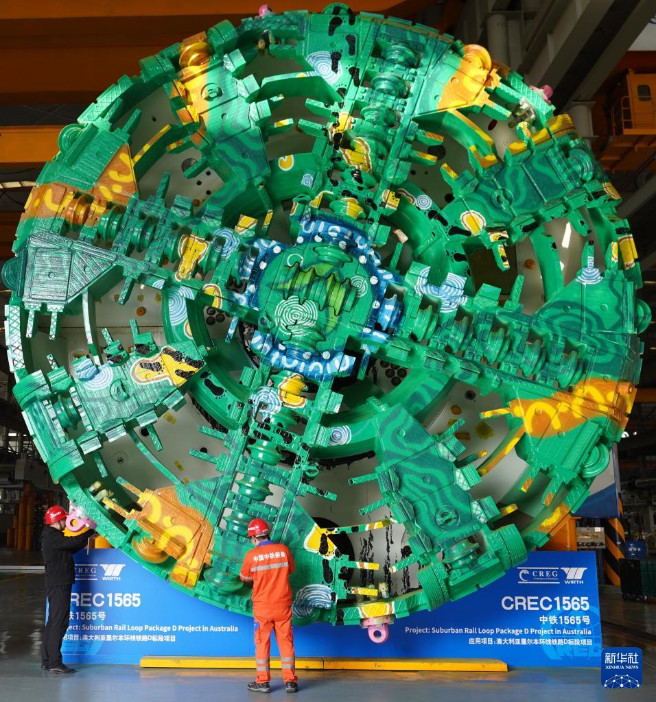 11月3日,工人在位于河南鄭州的中鐵裝備集團車間進行盾構(gòu)機下線驗收工作。