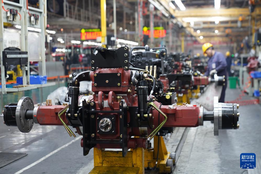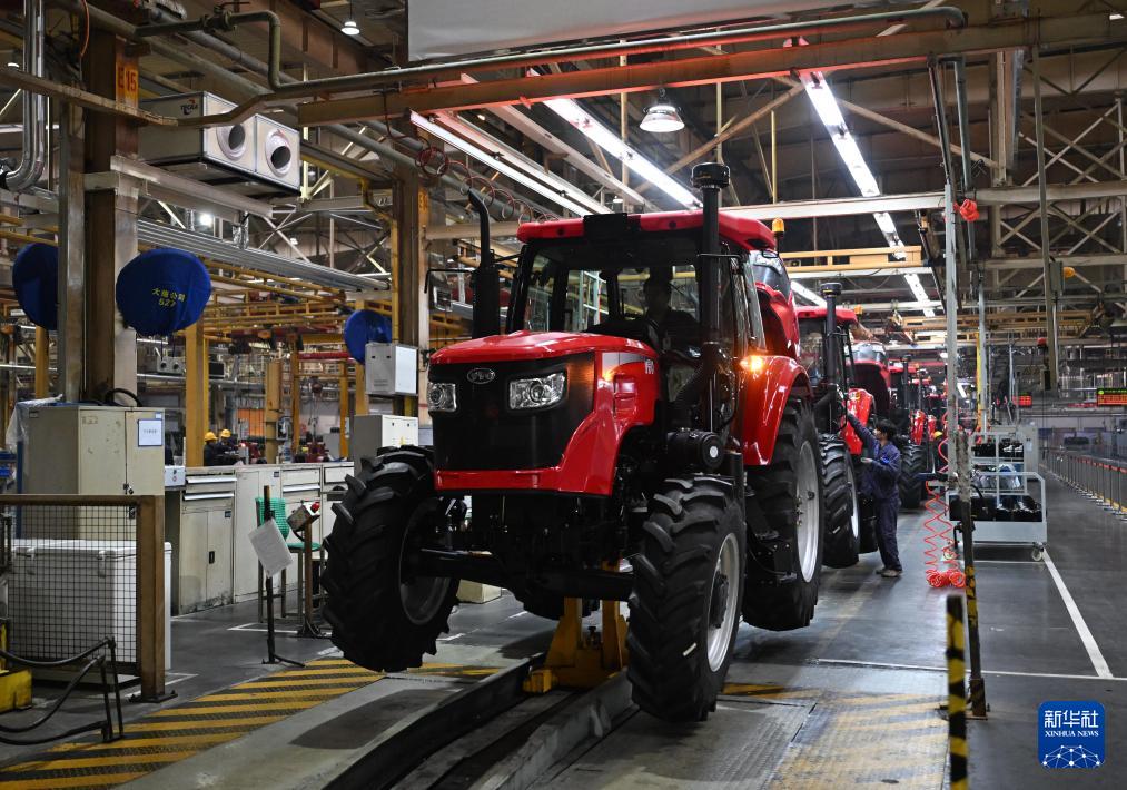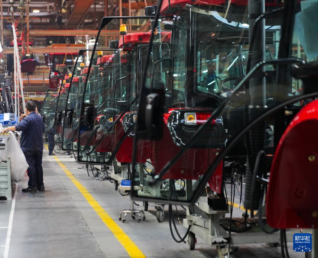 11月4日,工人在位于河南洛陽的國機集團中國一拖大輪拖總裝線作業(yè)。