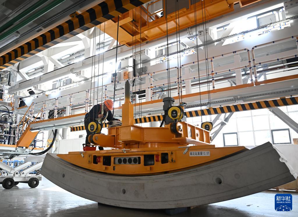 11月3日,工人在位于河南鄭州的中鐵裝備集團車間進行盾構(gòu)機管片吊機負(fù)載調(diào)試。