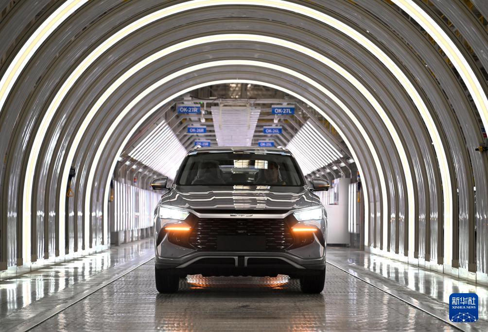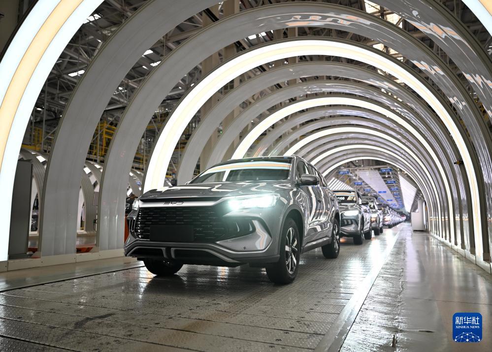 這是11月3日在鄭州航空港區(qū)比亞迪總裝工廠拍攝的新能源汽車“宋Pro”生產(chǎn)線。