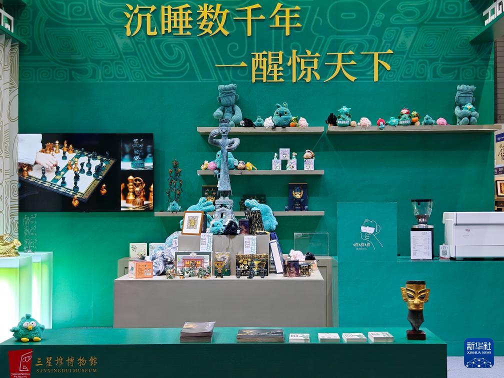 4月27日在第六屆國家考古遺址公園文化藝術(shù)周活動(dòng)上拍攝的三星堆博物館文創(chuàng)展區(qū)。