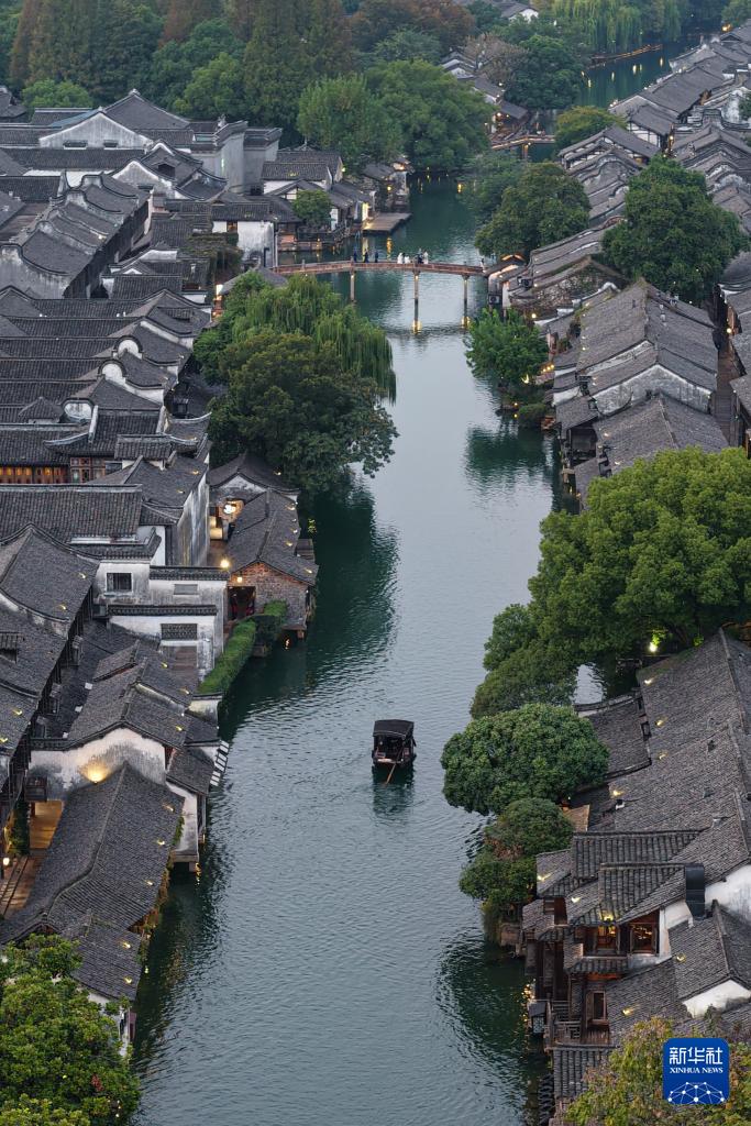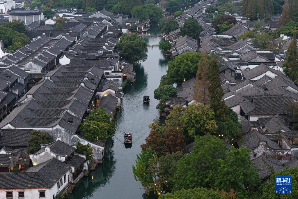這是11月5日拍攝的烏鎮(zhèn)西柵景區(qū)(無人機照片)。