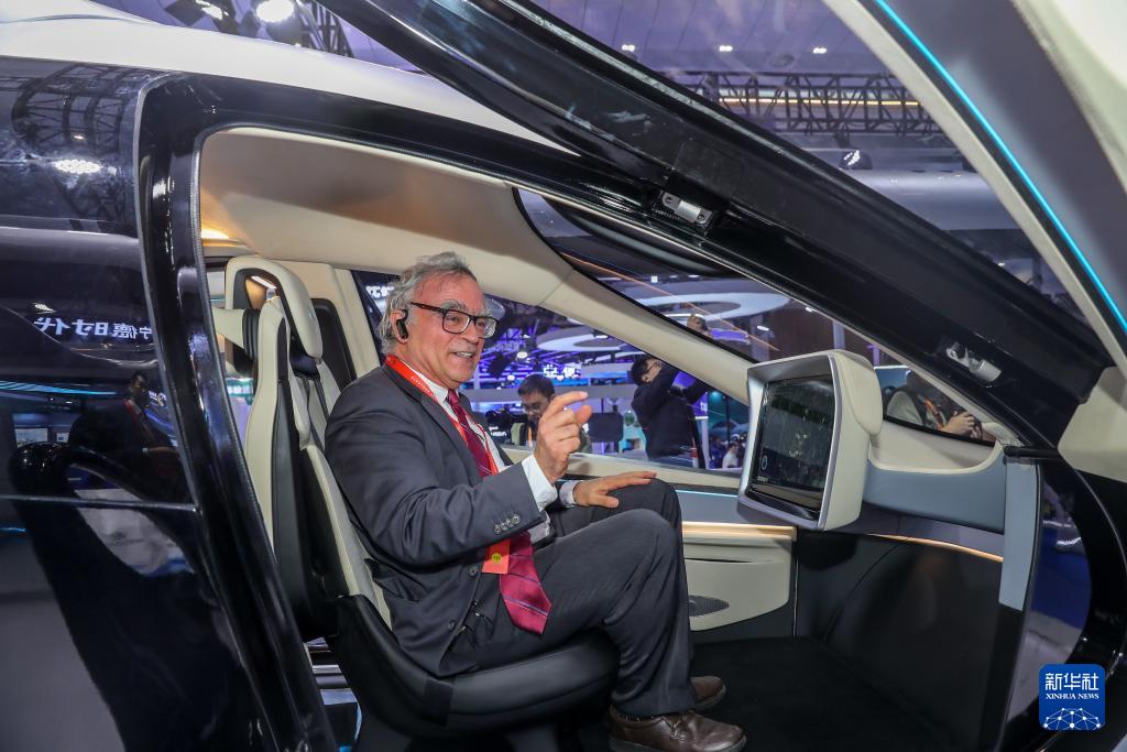 11月12日,一名外國(guó)嘉賓感受電動(dòng)飛行汽車。