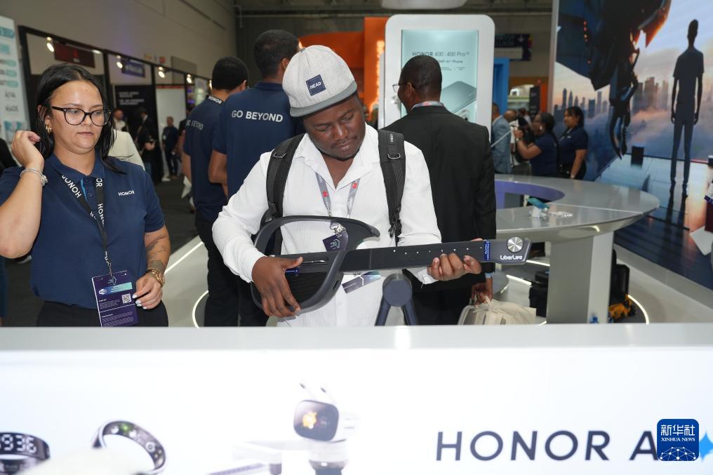 11月11日,在南非開(kāi)普敦,人們參觀2025年非洲科技節(jié)上的中國(guó)企業(yè)展臺(tái)。