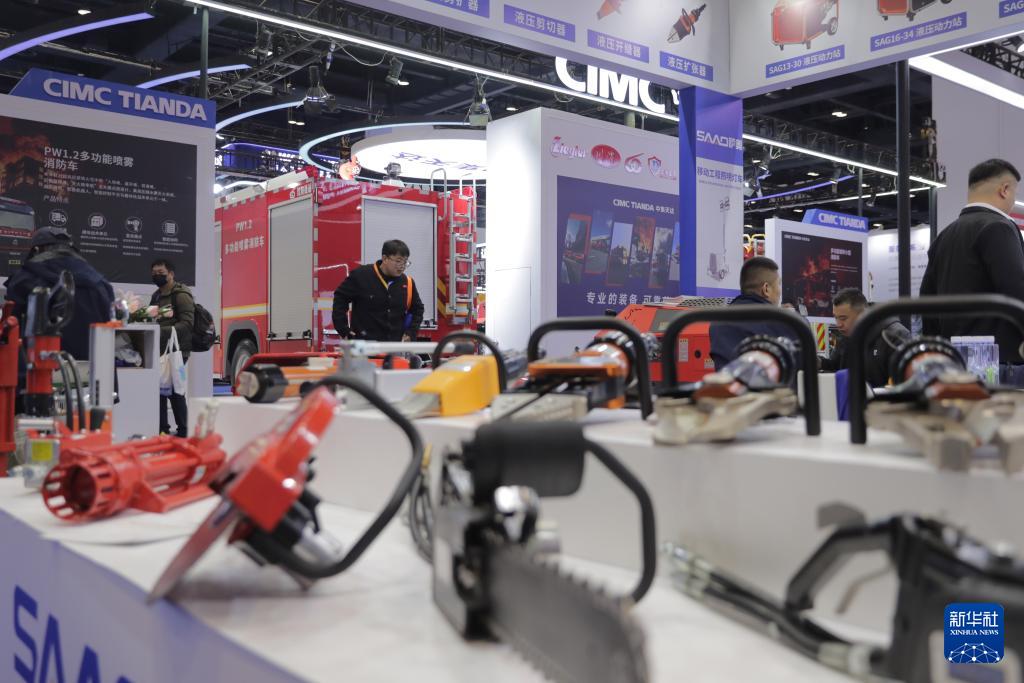 11月18日,觀眾在2025中國(guó)國(guó)際應(yīng)急管理展覽會(huì)中集展位參觀。